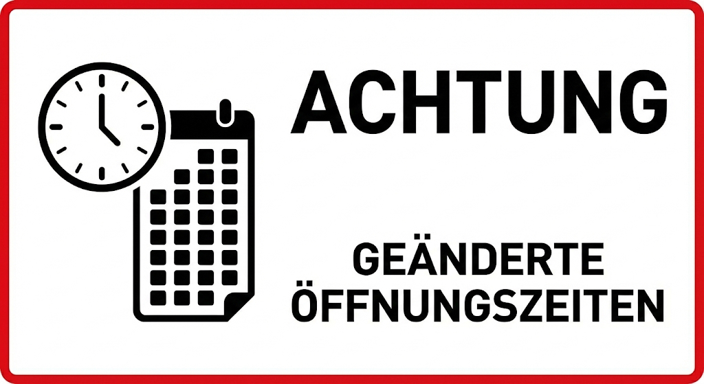 Das Jobcenter Elbe-Elster weist darauf hin, dass sich die Öffnungszeiten an folgenden Tagen ändern: Dienstag, 23.12.2025 Dienstag, 30.12.2025 Verkürzte Öffnungszeiten: 8:00 Uhr bis 13:00 Uhr und 14:00 bis 16:00 Uhr.